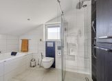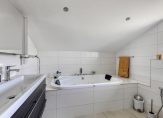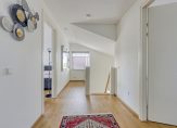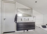 Via de fraai vormgegeven makkelijk lopende trap bereik je de verdieping met 3 slaapkamers van ca. 18, 18 en 14 m² met aan de voorkant een balkon van 11 m², Luxe moderne badkamer van ca. 10 m² met een 3de toilet, wastafelmeubel, whirlpool extra breed en douche, vanuit een slaapkamer is de vliering bereikbaar.