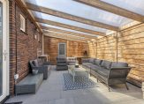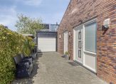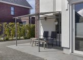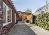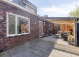 Aan de achterzijde van het huis is een ruime overkapping waardoor een gezellige intieme en privacy rijke plek is ontstaan.