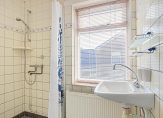 Overloop, 3 slaapkamers van respectievelijk 9,5, 9 en 7,5 m², eenvoudige badkamer met een douche en wastafel.