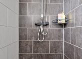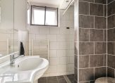 Overloop, drie slaapkamers, badkamer met een douche, wastafelmeubel en 2de toilet.