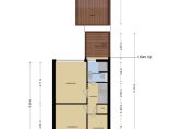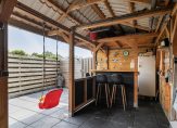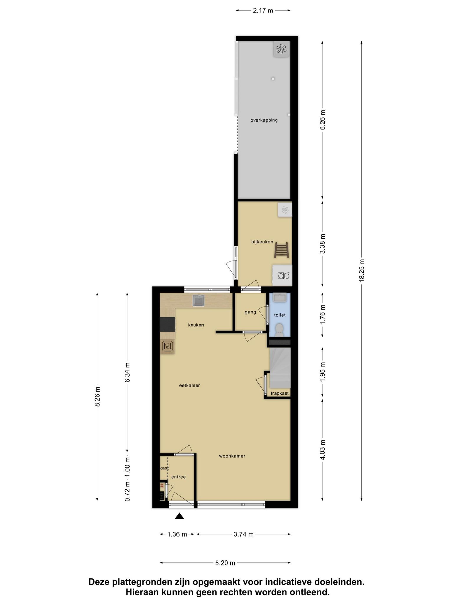 Entree/hal, meterkast, gezellige woonkamer voorzien van een laminaatvloer, tussen halletje met toegang tot het toilet met hangend closet en een wasbakje, keuken met daarin een L-blok met een 4 pits inductiekookplaat, afzuigkap, combimagnetron en vaatwasser uit 2024 aangebouwde berging/bijkeuken, toegang tot de achtertuin met heerlijke overkapping met bar.