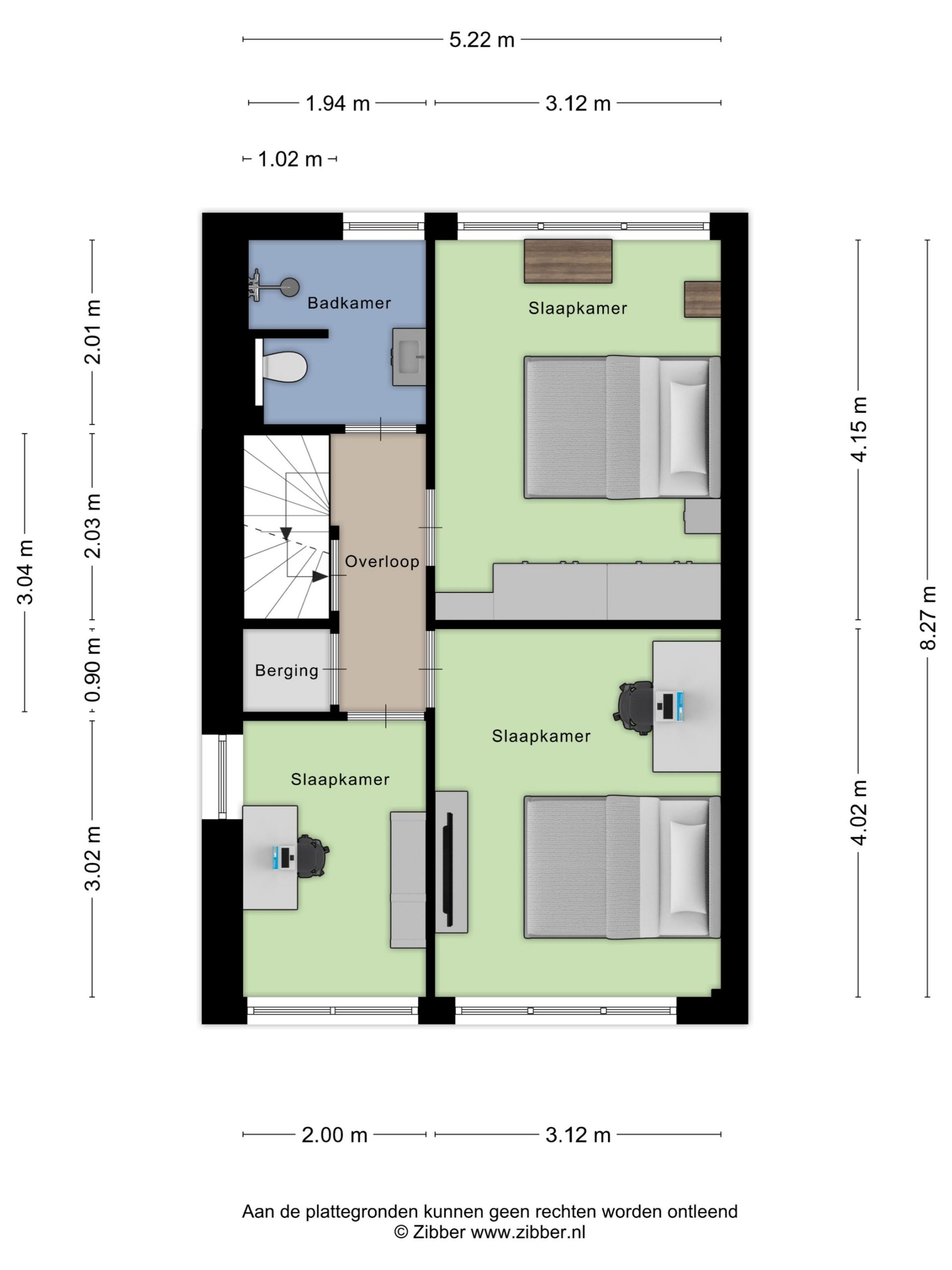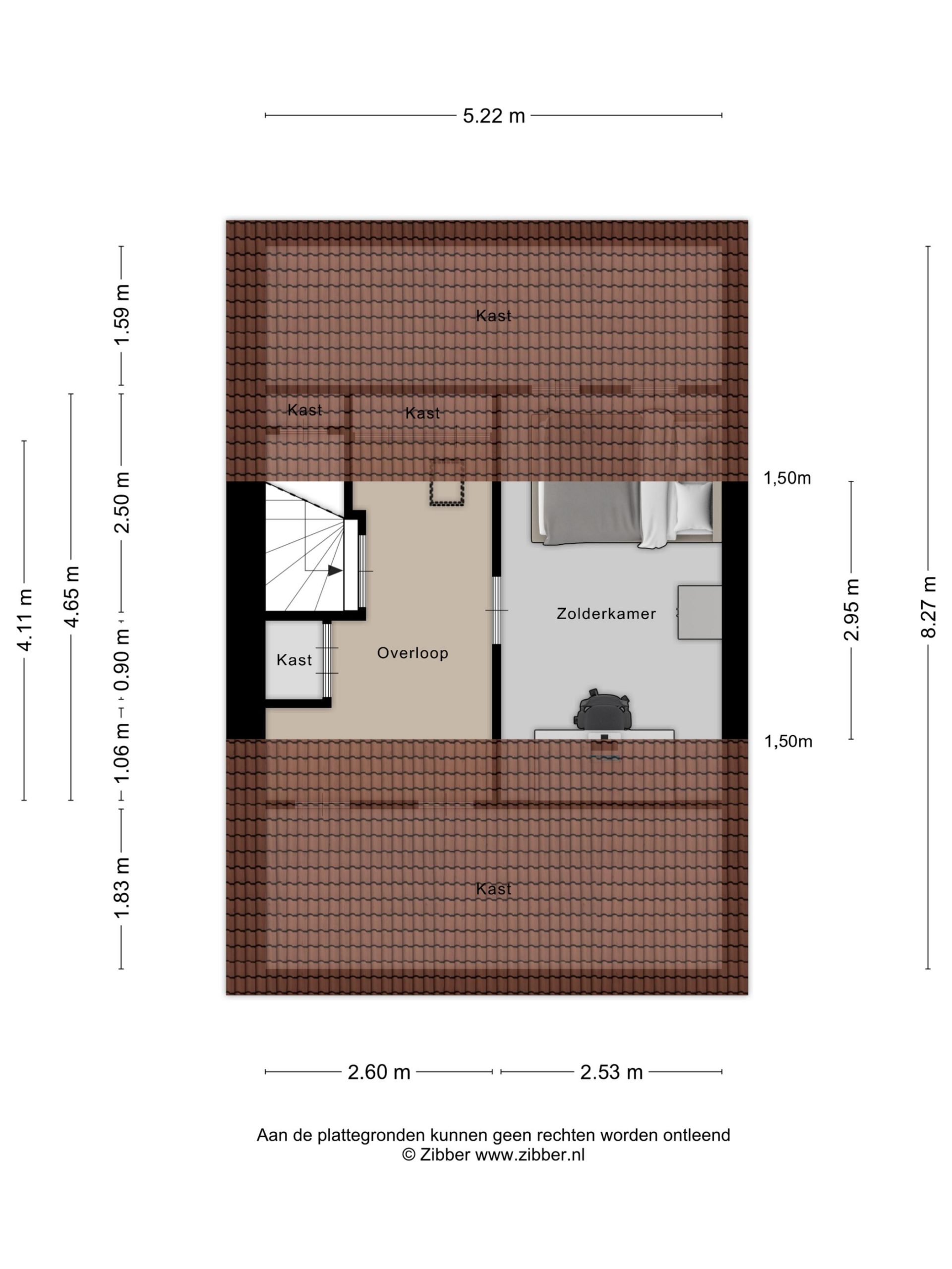 • Overloop, vierde slaapkamer op zolder (gemeten als 7,5 m² overig inpandige ruimte onder 1.50 m)