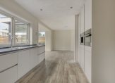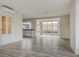Entree/ruime hal met meterkast en modern luxe toilet voorzien van hangend closet en urinoir. De sfeervolle royale L-vormige woonkamer heeft brede vensterbanken, een schuifpui naar het terras en een open keuken met complete inbouwapparatuur.