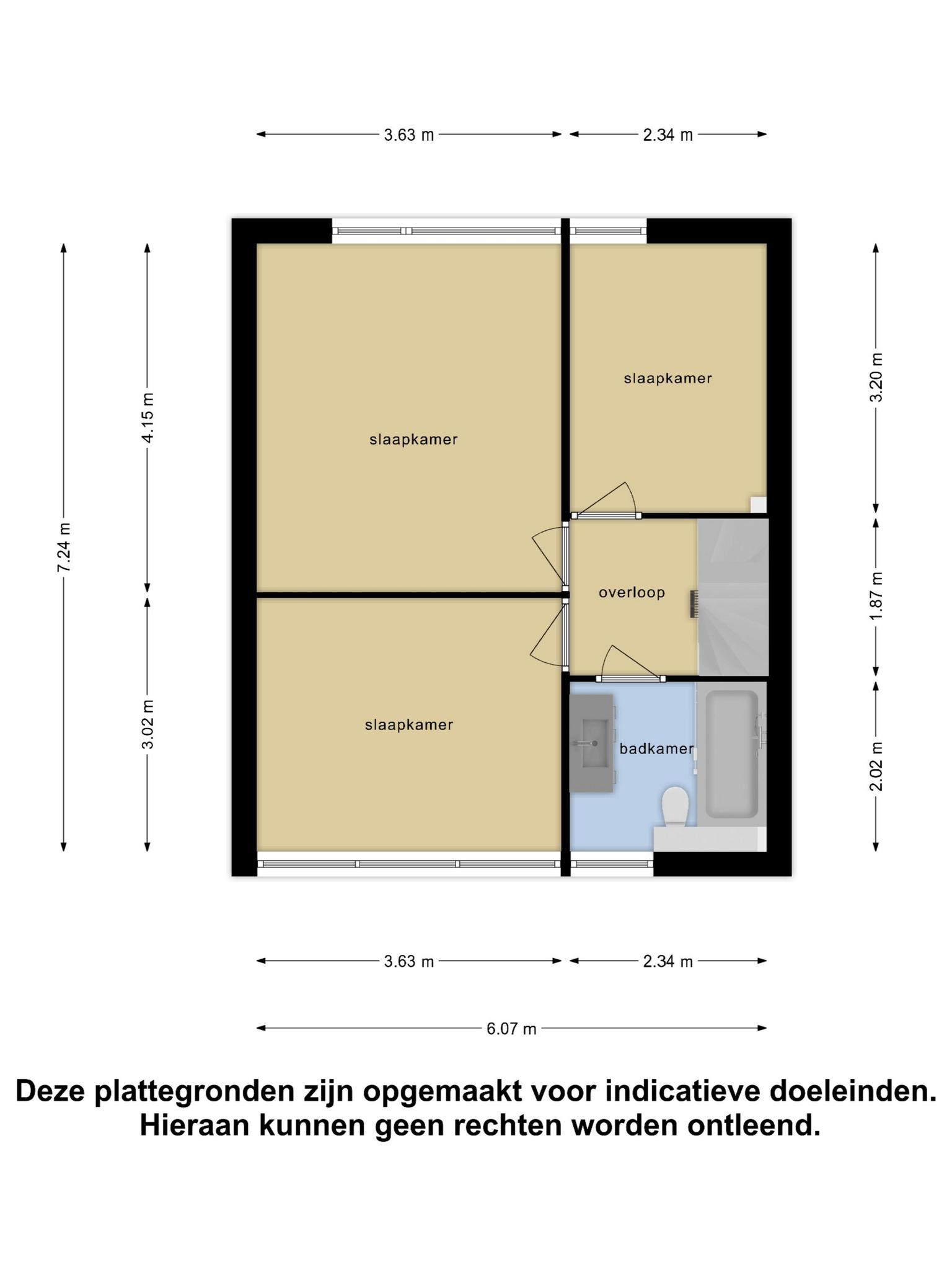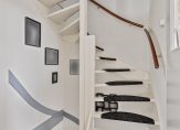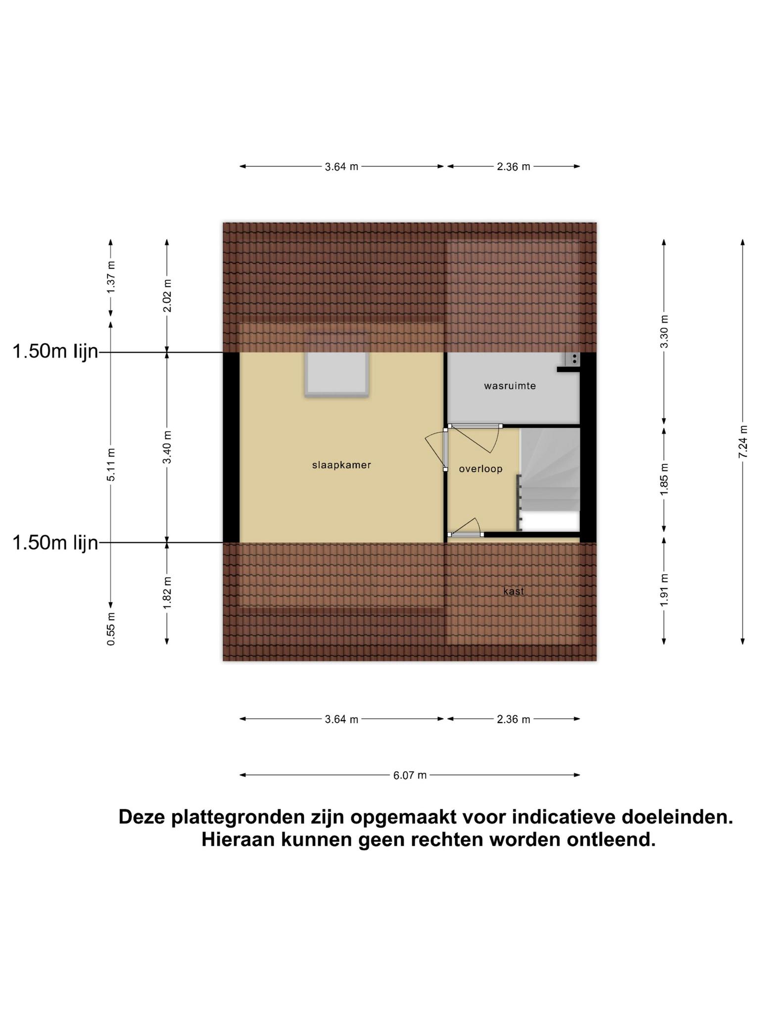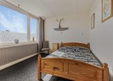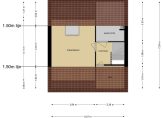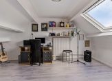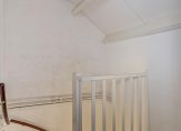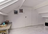 Vaste trap naar de overloop, ruime slaapkamer van ca. 12 m². Zolderberging aan weerszijden van de woning.